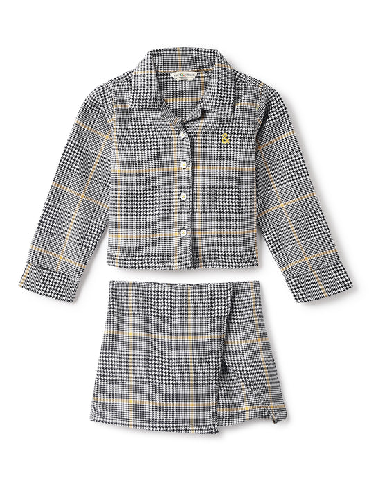 Girls Black Cotton Checks Crapped Shirt & Skort Co-Ord Set