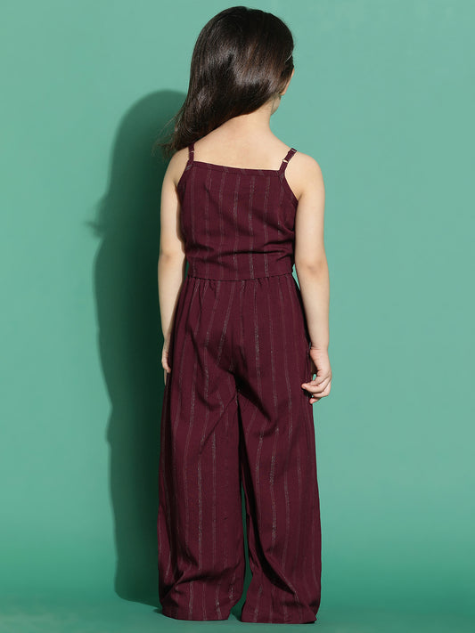 Girls Maroon Rayon Striped Top With Palazzo Co-Ord Set