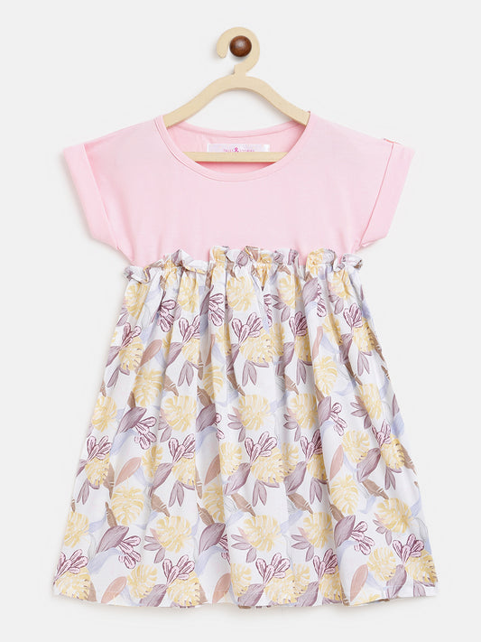 Girls Off White Rayon Regular Fit Half Sleeves Print Dress