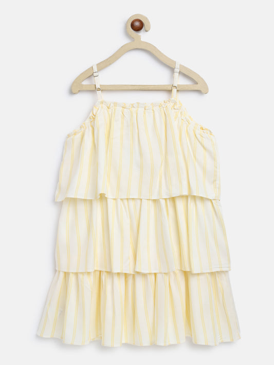 Girls Yellow Cotton Blend Regular Fit Checks Dress