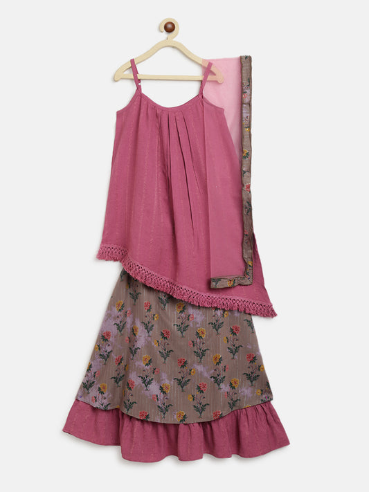 Girls Pink Rayon Regular Fit Full Sleeves Stripe Dress