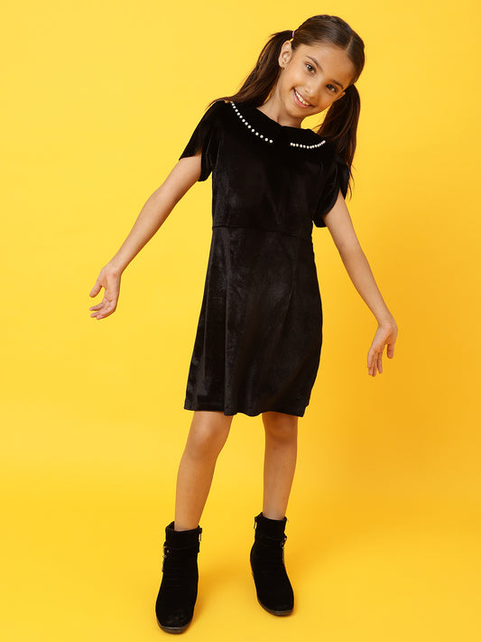 Girls Golden Half Sleeve Bodycon Fit Solid Dress