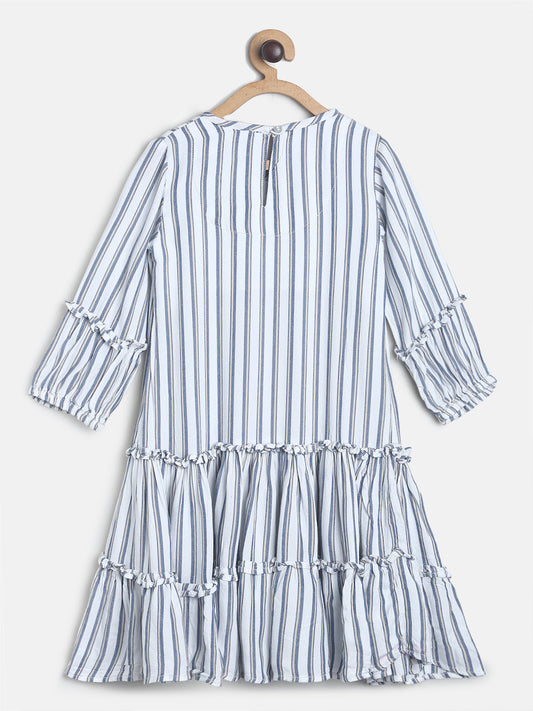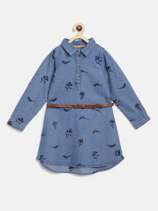 Girls Sky Blue Full sleeves Solid Dress with Jacket