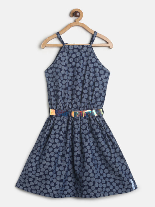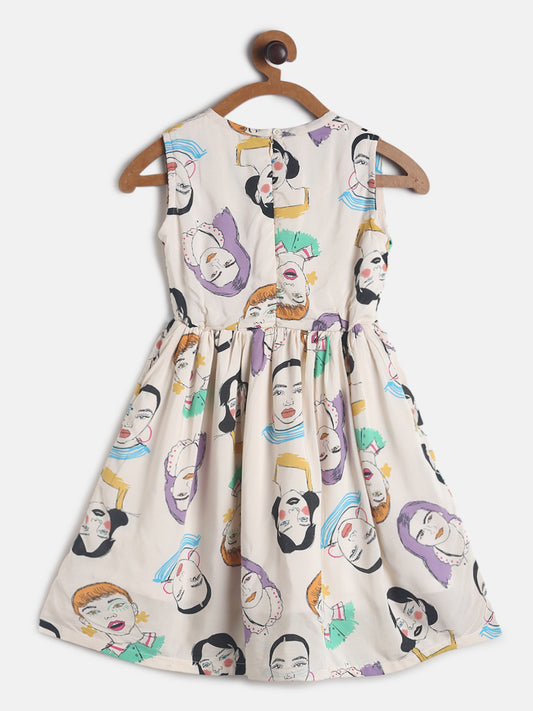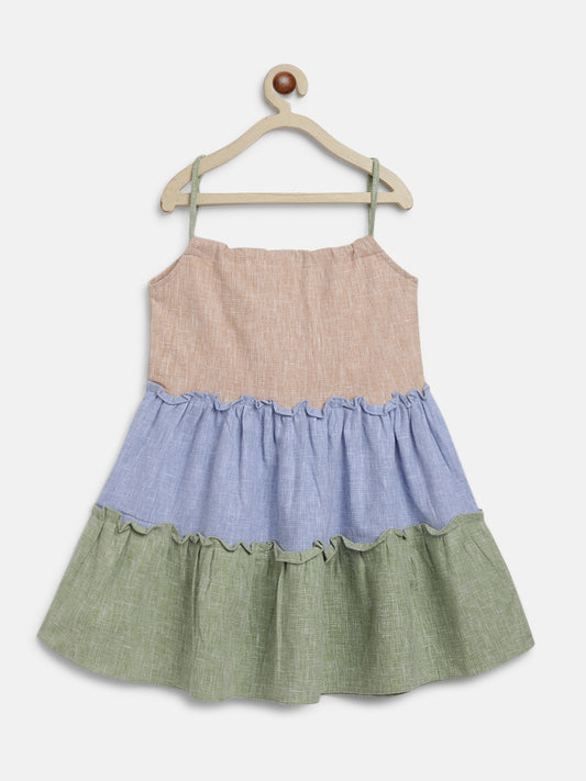 Girls Multi Color 100% Cotton Sleeveless Regular Fit Slubs Dress