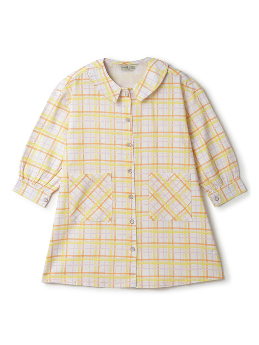 Girls Yellow Cotton Checkered Dress