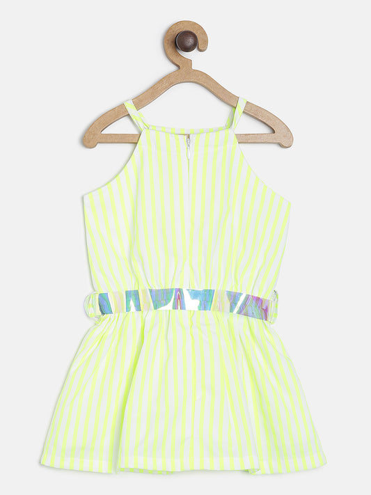 GIRLS NEON GREEN CASUAL DRESS WITH HOLOGRAPHIC BELT