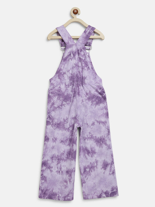 Girls Purple 100% Cotton Tie & Dye Dungaree