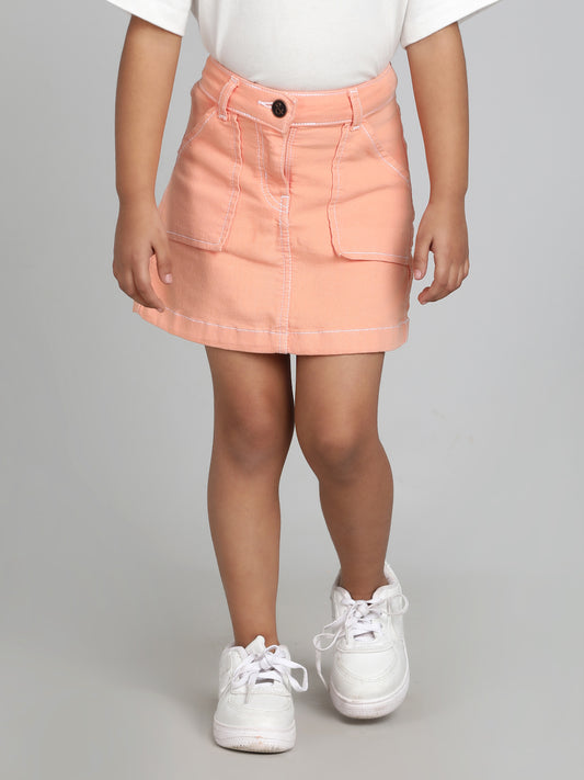 Girls Black A-Line Washed Lycra Above Knee Skirt