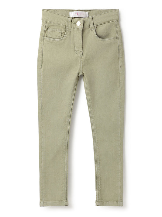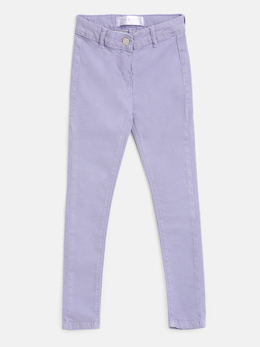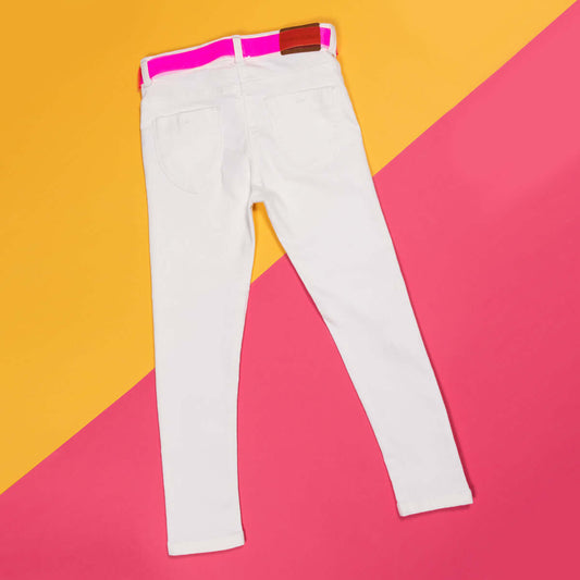 Girls Slim Fit White Casual Jeans With Pink Belt