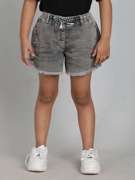 Girls Grey Washed Cotton A-Line Regular Fit Above Knee Shorts