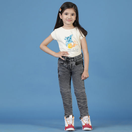 Girls Polyester Silver Top & Legging Co-Ord Set