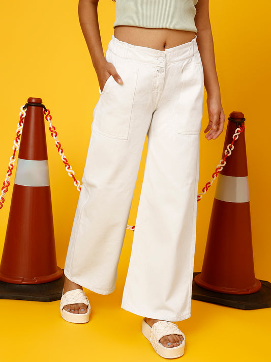 Girls White Regular Fit Cotton Ultra White Washed Culottes