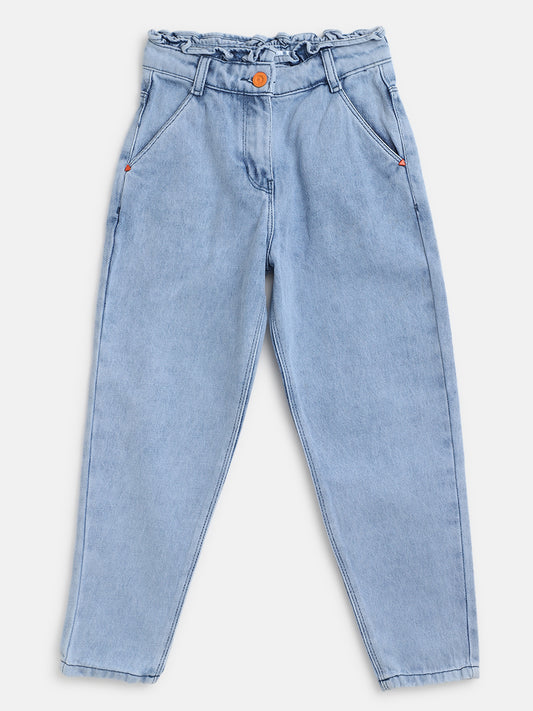 Girls Medium Blue Mom fit Cotton Washed Jeans