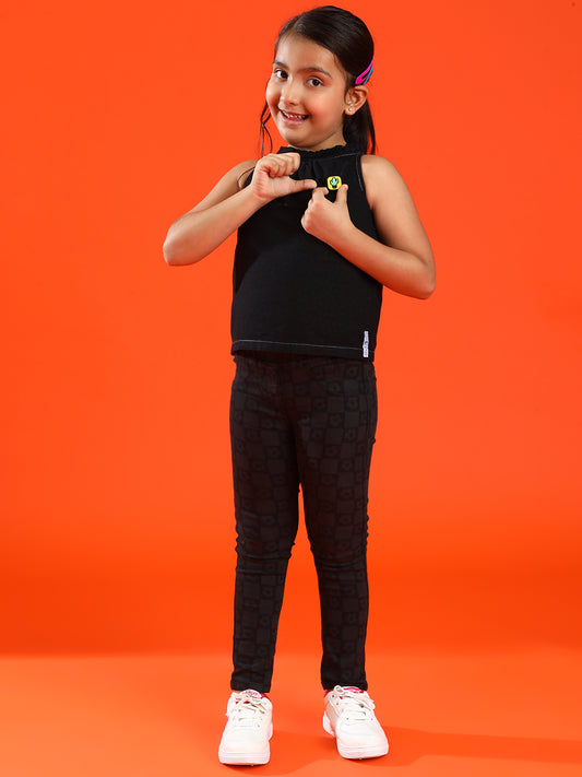 Girls Navy Blue Lycra Printed Regular Fit T-shirt