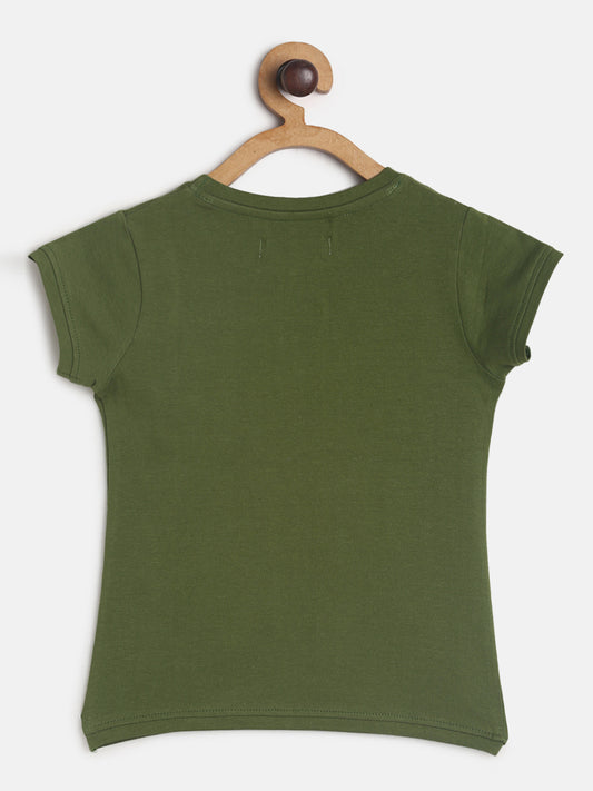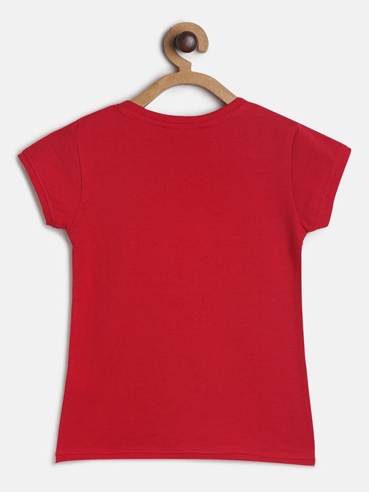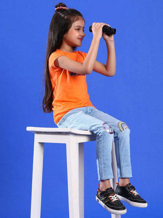 Girls Printed Orange Cotton Regular Fit T-Shirts