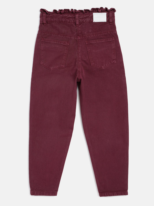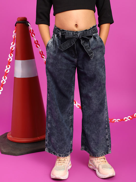 Girls Dark Blue Denim Regular Fit Washed Jogger