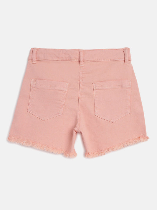 Girls Light Blue Lycra Regular Fit Solid Shorts