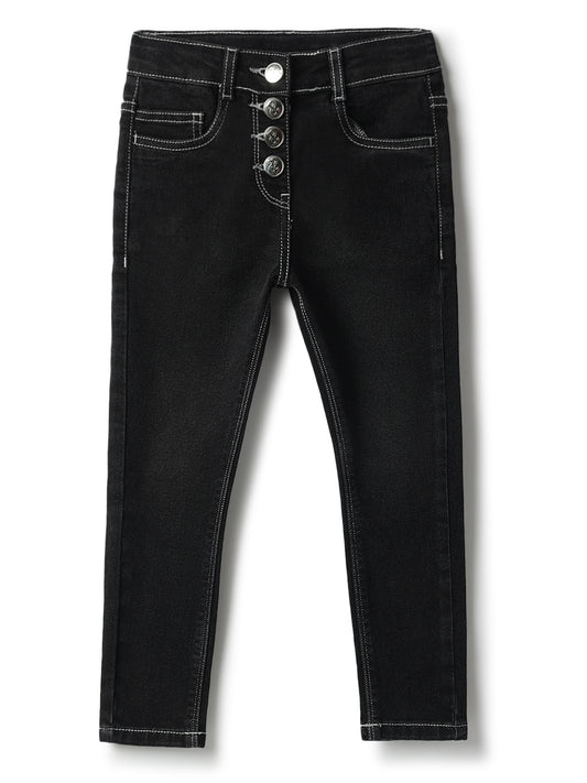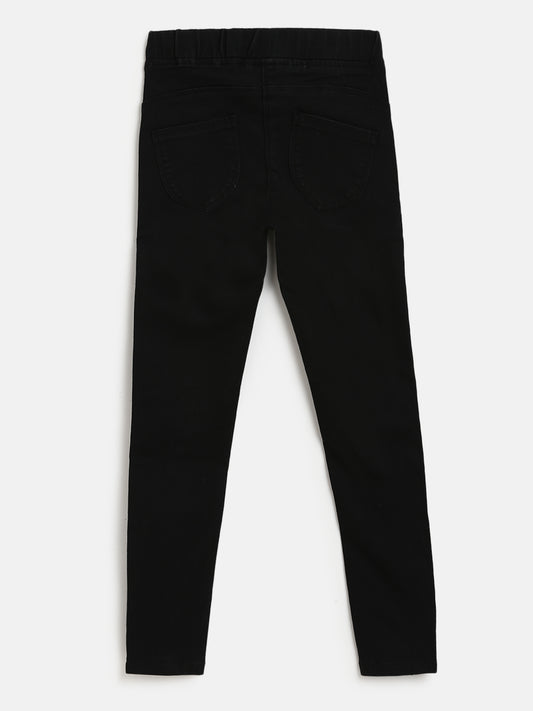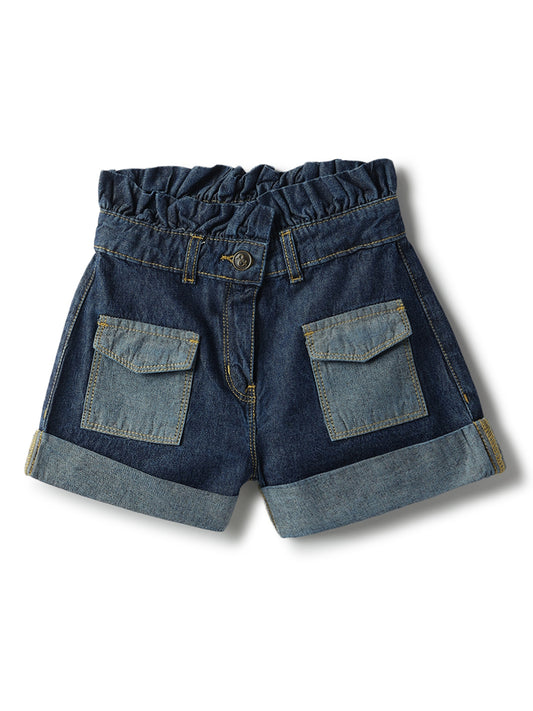 Girls Dark Blue Washed Lycra Regular Fit Above Knee Shorts