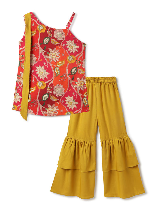 Girls Pink Top & Yellow Sharara Floral Printed Ethnic Set