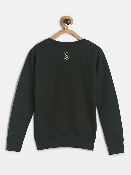 Girls Black Poly Cotton Printed Full Sleeves Sweatshirt