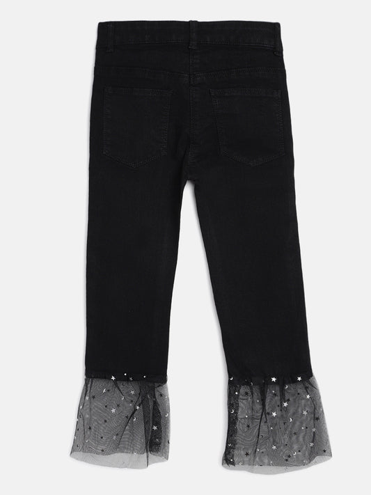 Girls Black Poly-Cotton Embroidery Sweatshirt