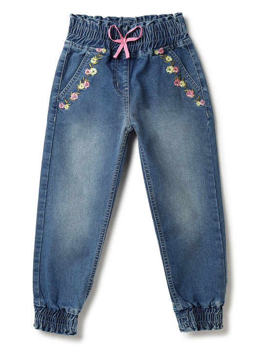 Girls Dark Blue Mom fit Cotton Washed Jeans