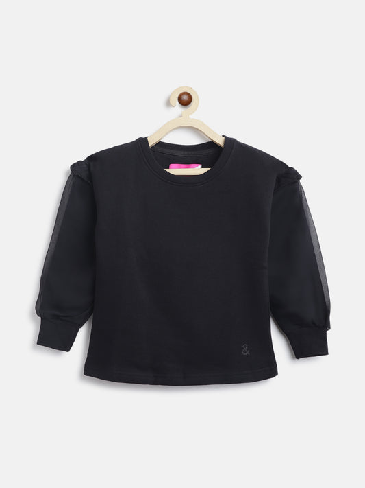 Girls Black Solid Pure Cotton Long Sleeves Sweatshirt