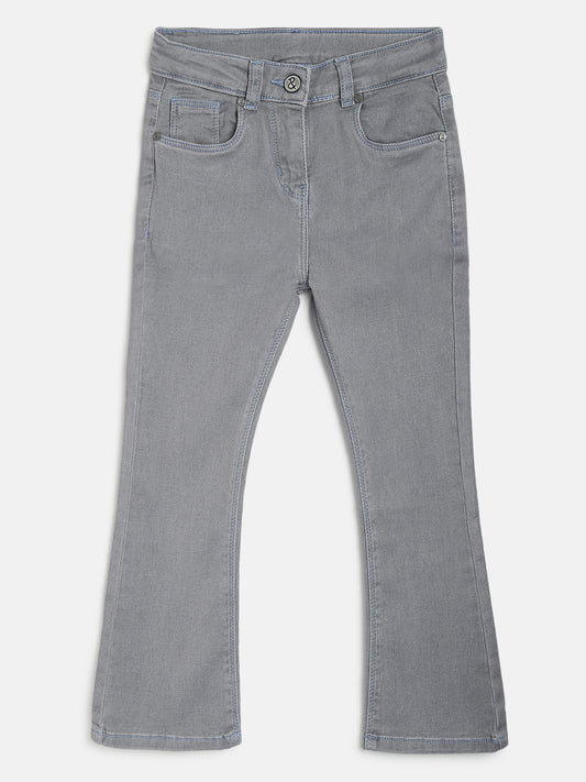Girls Grey Mom fit Lycra Embroidery Jeans