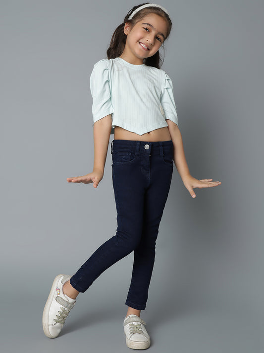 Girls Dark Blue Skinny fit Lycra Washed Jeans