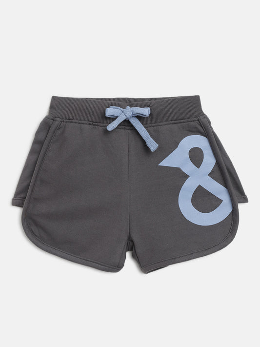 Girls Grey Cotton Poly Regular Fit Print Shorts
