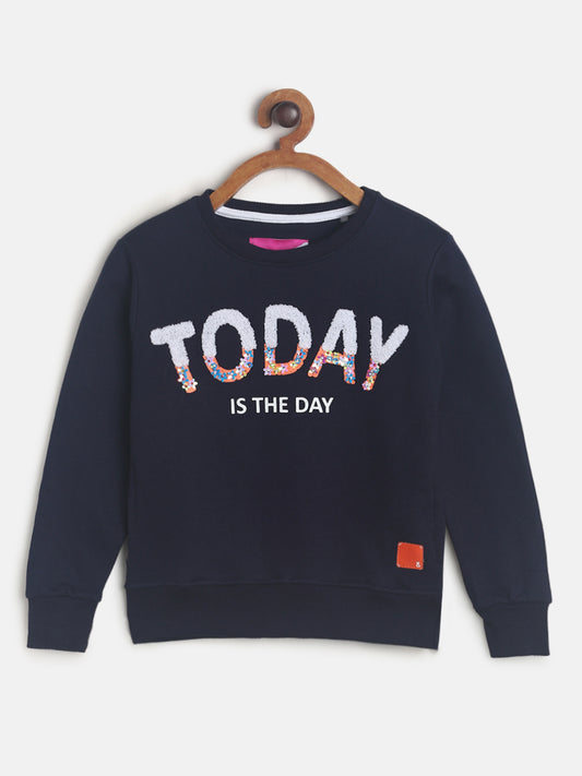 Girls Navy Blue Printed Cotton Sweatshirt