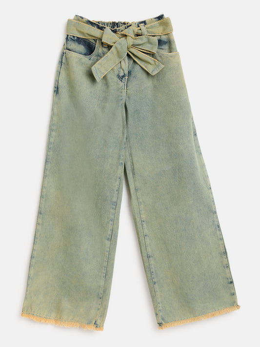 Girls Olive Denim Palazzo