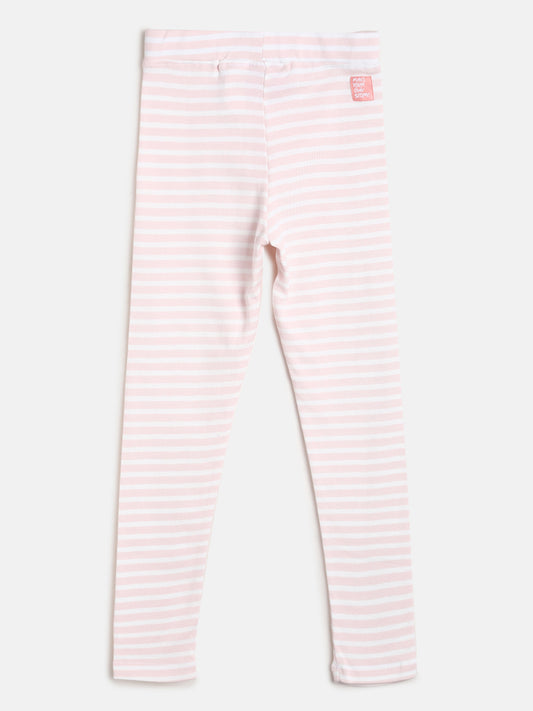 Girls Pink Striped Leggings