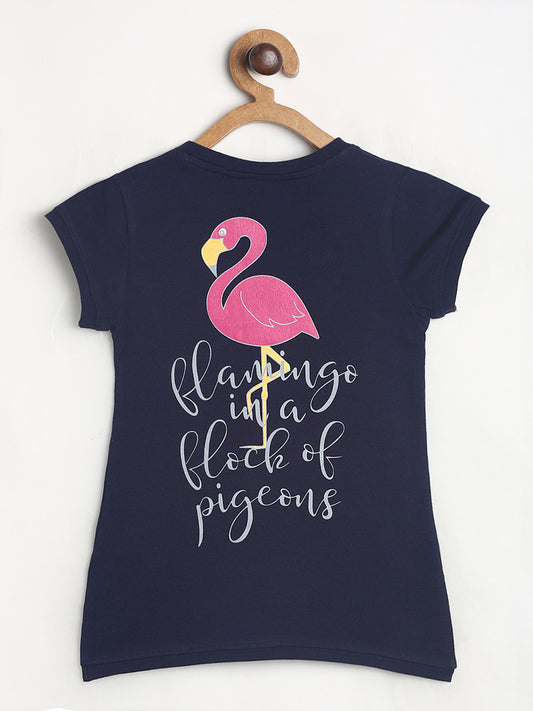 Girls Navy Blue Printed T-shirt