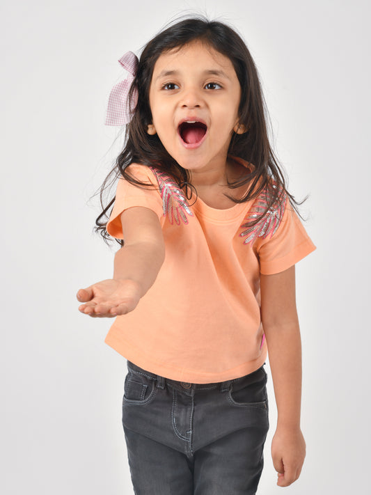 Girls Peach Embroidered T-shirt