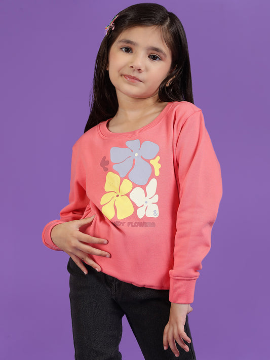 Girls Pink Floral Printed Sweatshirt