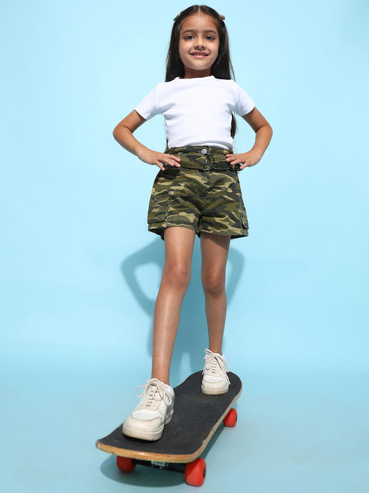 Girls Olive Cotton Regular Fit solid Shorts