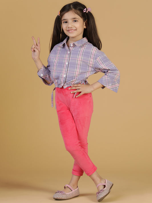 Girls Pink Neon Solid Leggings