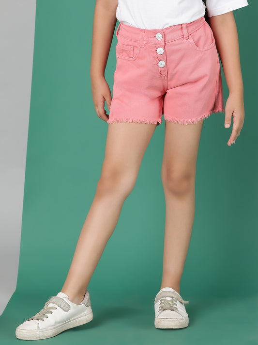 Girls Pink Washed Cotton Thigh Length Shorts