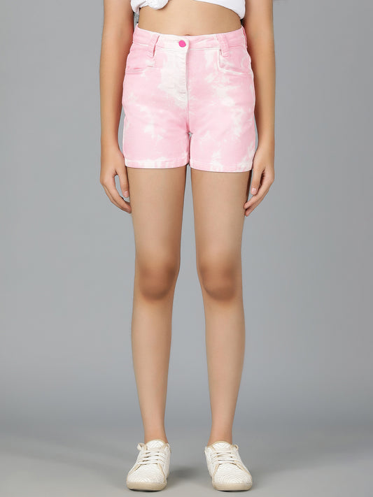 Girls Pink Tie & Dye Cotton Casual Shorts