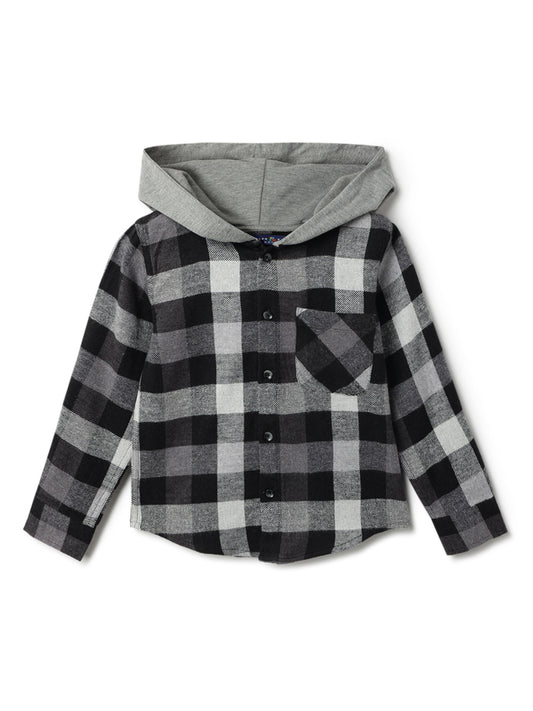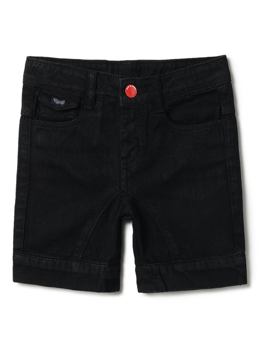 Boys Black Printed Cotton Mandarin Collar Ethnic Kurta Set