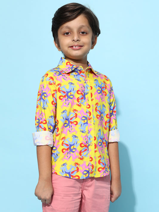 Boys Yellow Rayon Printed Regular Fit Shirt