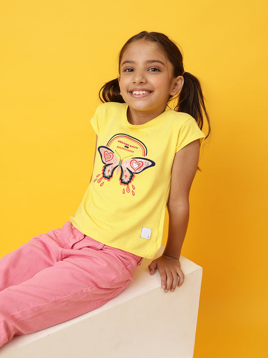 Sold outGirls Round Neck Yellow T-Shirt