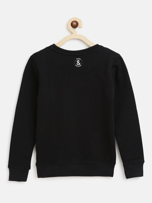 Girls Black Printed Cotton Sweatshirt