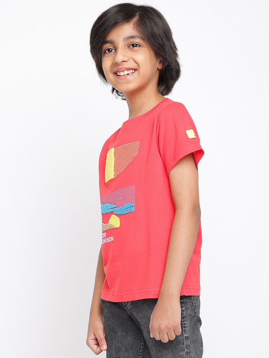 Sold outBoys Red Printed Cotton T-shirt