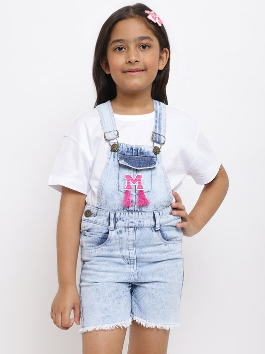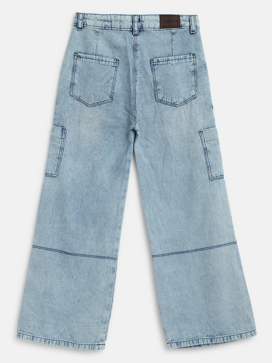 Girls Light Blue Wide Leg Fit Cotton Washed Jeans