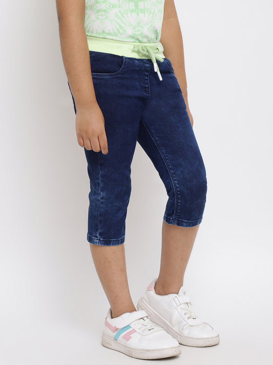 GIRLS SLIM FIT DARK BLUE CAPRI WITH LIME GREEN WAISTBAND