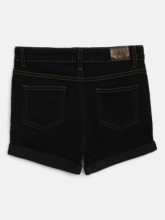 Girls Light Blue Lycra Regular Fit Solid Shorts