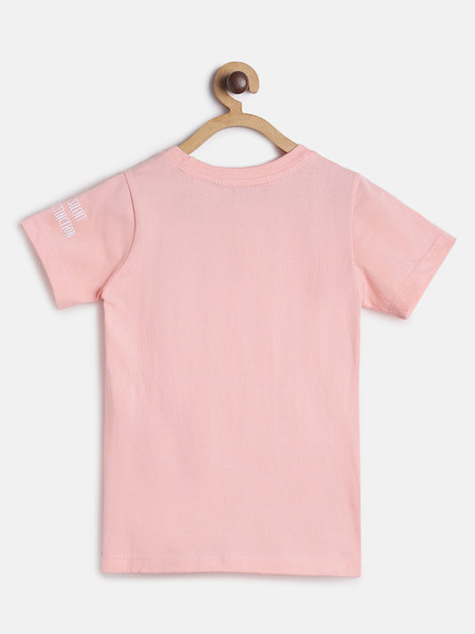 Boys Regular Fit Light Pink Embroidered Cotton T-shirt