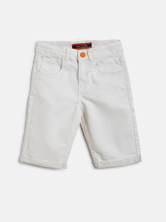 Boys Regular Fit Embroidered White Cotton T-shirt